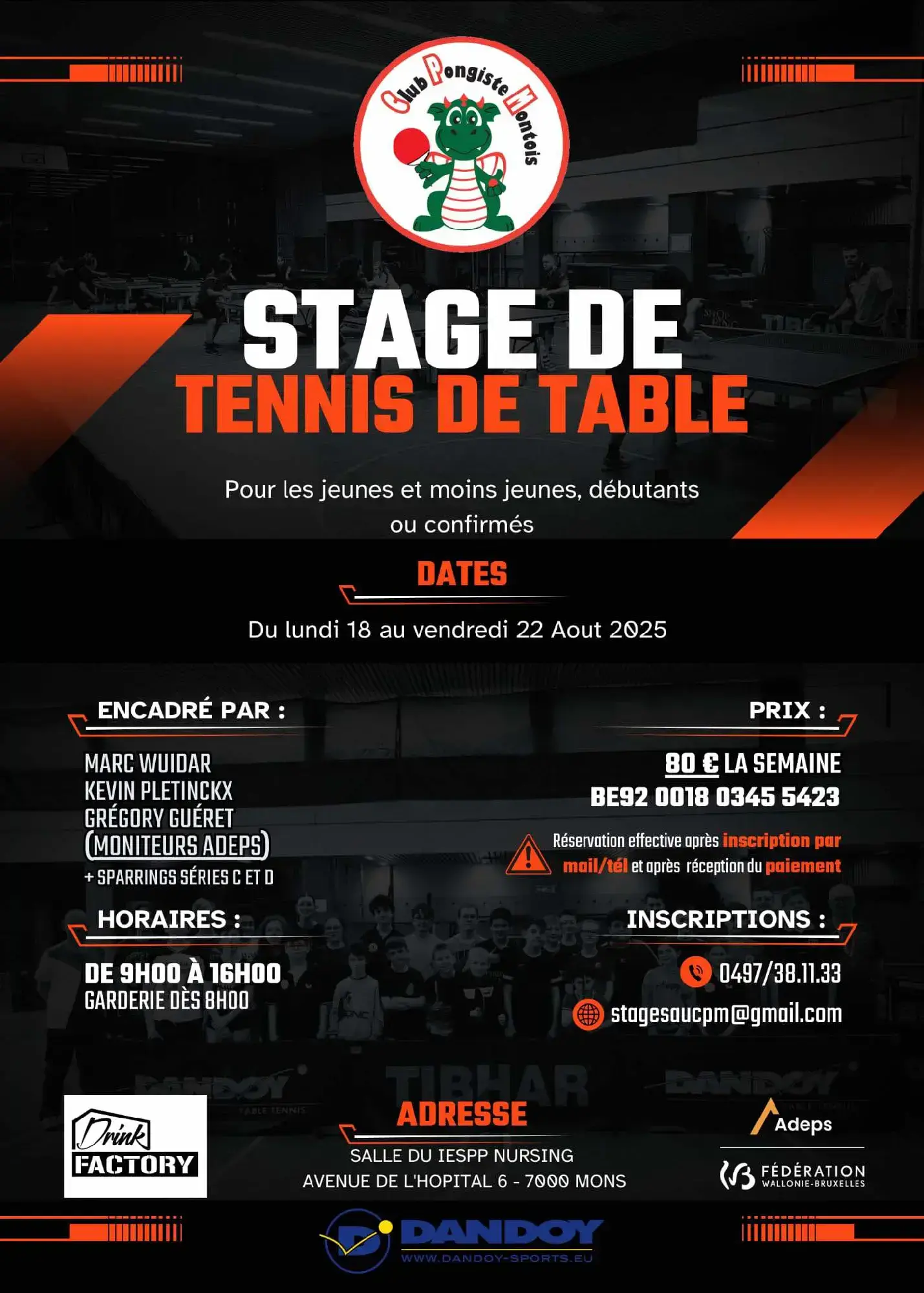 Ce stage aura lieu du lundi 18 au vendredi 22 août.